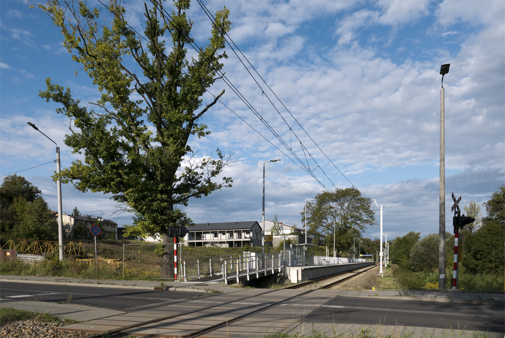 Ostatecznie po zaakceptowaniu przez inwestora w 2020 roku projektu budowlanego przystanek zlokalizowano po południowo - zachodniej stronie przejazdu kolejowego. Razem z wyremontowaną ulicą Kazimierza Brodzińskiego (inwestycja miejska prowadzona od lutego do grudnia 2020 roku) rejon ten stanowi całkowicie nową przestrzeń publiczną w miejsce m.in. niebezpiecznej wieczorami oraz niedoświetlonej okolicy.