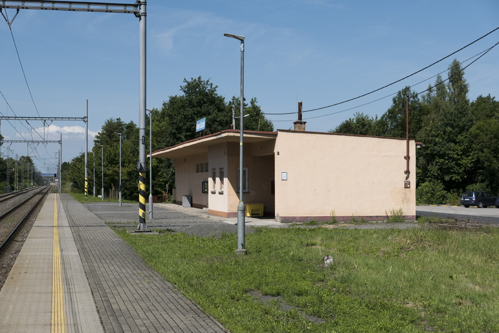 Otwarty 30 czerwca 1961 roku po zmianie przebiegu linii 301D przystanek posiada dwie krawędzie peronowe, na których oddano do użytku budynek dworcowy z kasą, ogrzewaną poczekalnią i pomieszczeniami obsługi na peronie północnym (drugim) oraz murowaną wiatę z zamykaną częścią ogrzewaną na peronie południowym (pierwszym). Połączenie między obydwoma peronami zrealizowano poprzez przejście pod torami mieszczące też przepust, którym biegnie ulica Těrlická.